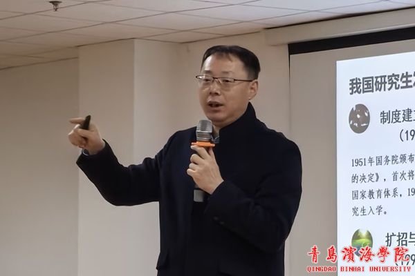 会议伊始,谢海军院长围绕考研相关内容展开讲解。他首先梳理了研究生教育的分类与学科体系,详细阐释了学术型硕士与专业型硕士培养的的区别,指出学硕更侧重理论研究与学术创新能力的培养,而专硕则更注重实践应用与职业能力的提升。在报考指导环节,他结合具体学科门类、专业代码等关键信息,建议同学们要立足自身专业背景,综合考虑职业兴趣、就业前景及个人优势,科学选择报考方向。谢院长还现场演示了中国研究生招生信息网的相关功能,包括院校信息查询、招生简章解读、报名流程操作等,提醒同学们要善于利用这一权威平台获取最新招考动态。最后,他鼓励同学们要尽早确立目标,夯实专业基础,合理规划大学生活,为未来深造做好充分准备。
