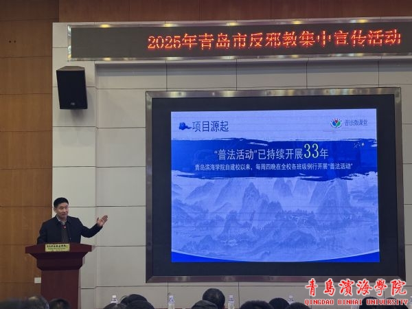 11月28日,2025年青岛市反邪教集中宣传活动在青岛职业技术学院成功举办。本次活动以“扬正祛邪 共建和谐”为主题,由青岛市科学技术协会、中共青岛市委政法委员会主办。文理基础学院张守顺老师受邀参会,以《“普法微课堂”筑牢学校反邪教宣传教育阵地》为题作经验交流,分享学院反邪教工作的创新实践与丰硕成果。