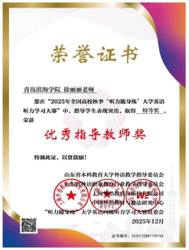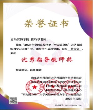 为深入贯彻《中国教育现代化2035》文件精神,助力高校教师更好地运用AI赋能外语教学,促进人才培养与教学创新,2025年秋季全国高校学生听力学习大赛自11月3日启动以来,经过一个多月的激烈角逐,于12月12日圆满落幕。文理基础学院在此次比赛中表现卓越,取得优异成绩。