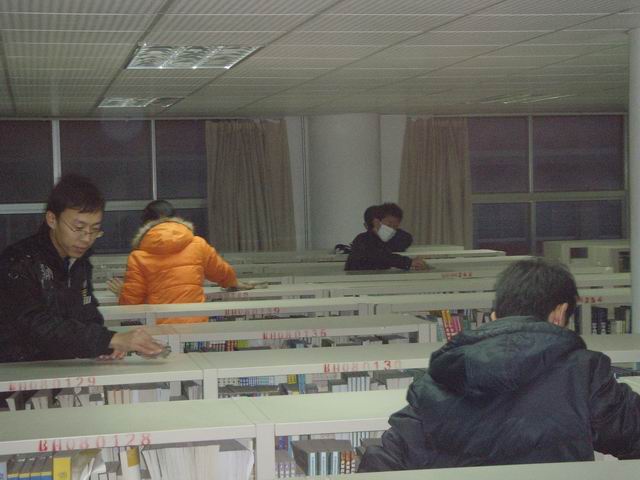 2009年11月12日,基础部青年志愿者协会部分成员到第二图书馆对第三借阅厅进行了彻底的卫生清洁。 为给我院创造一个清洁卫生的借阅环境,使图书馆发挥更大的功能。基础部青年志愿者协会成员秉承“为同学服务”的原则,对我院第二图书馆第三借阅厅进行了全面细致的打扫。各青协会员跑前跑后,上上下下,仔细仔细擦拭着每一排书架,清扫着地面的每一个角落,很快使借阅厅焕然一新整洁干净起来。